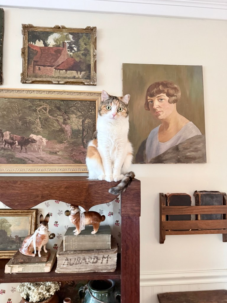 Happy Monday from Stevie 🤍 #furnitureattiffanys #handmedowncottage #steviethegirlkitty #cats #cats_of_instagram #calicocat #sillygirl