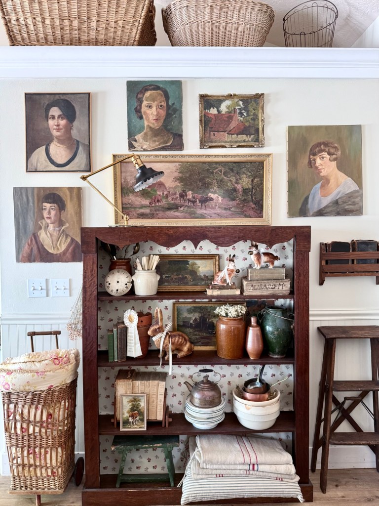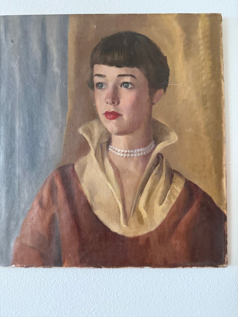 Meet Pearl… my newest, to me, portrait painting I got from @robinsroostutah 🤍 Isn’t she a beauty? Welcome home pretty lady #furnitureattiffanys #handmedowncottage #vintage #homedecor #art #portrait #wallofportraits #welcomehome