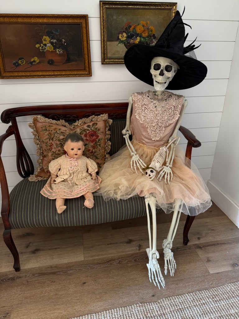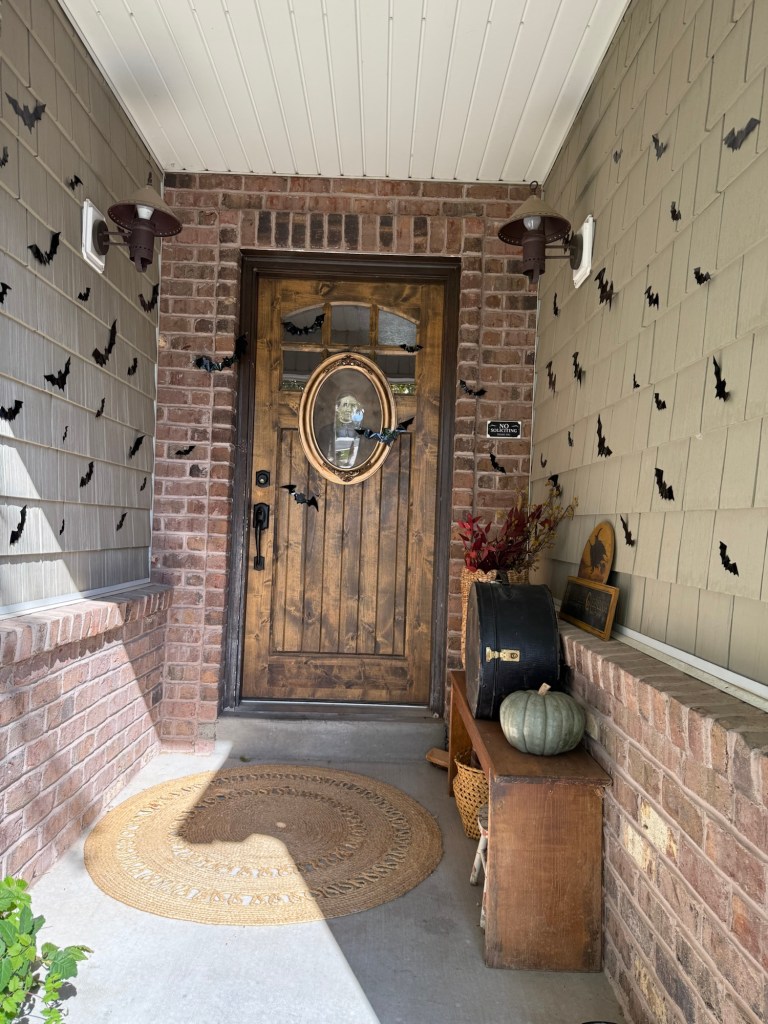 Halloween is my favorite holiday to decorate for 👻🖤🧙🏻♀️ Here’s my “graveyard” porch and entryway ready for trick or treaters 🧡🎃 #furnitureattiffanys #handmedowncottage #vintagehalloween #halloween #favorite #graveyard #spooky #portrait