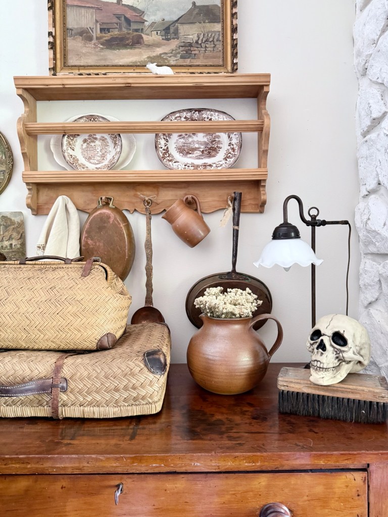 We’re still a week and a half away from Halloween, and I’m ready to take down the decorations haha 💀 A little mouse on my plate rack and a skull are still hanging on in this corner. Anyone else get tired of all the holiday decorations before the actual holiday? Maybe it’s just me 😅🧡 #furnitureattiffanys #handmedowncottage #halloween #halloweendecor #skull #home