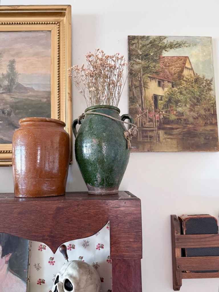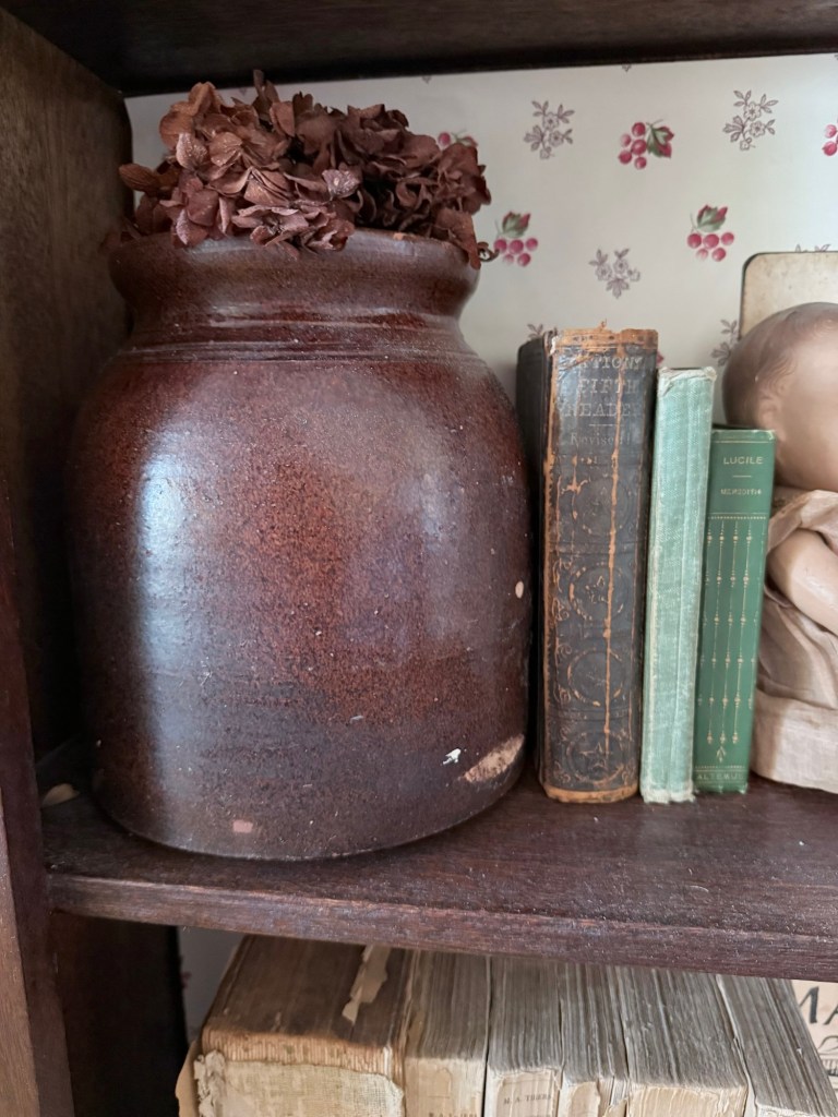 My obsession with old pottery crocks grows and grows 🤎 #furnitureattiffanys #handmedowncottage #homedecor #antique #crocks #french #earthenware