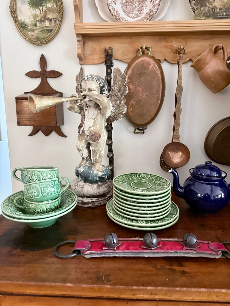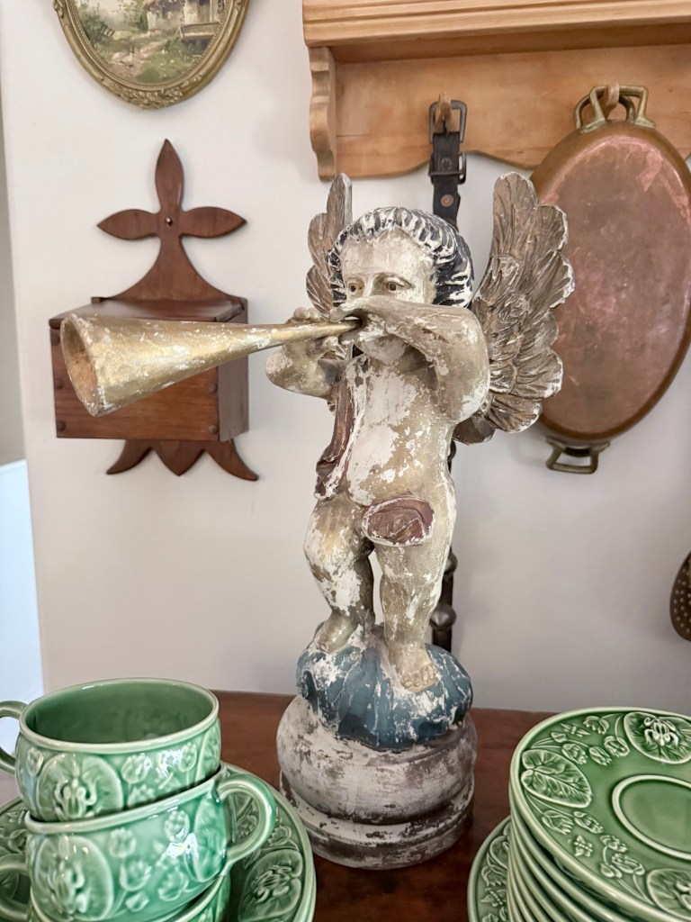 Today’s small haul ❤️ What would be your fav? I’m torn between the antique hand carved angel and the green dishes! #furnitureattiffanys #handmedowncottage #homedecor #vintage #antique #thriftstorefinds #antiquestorefinds #art