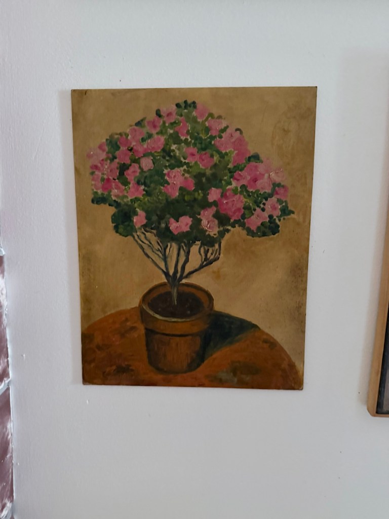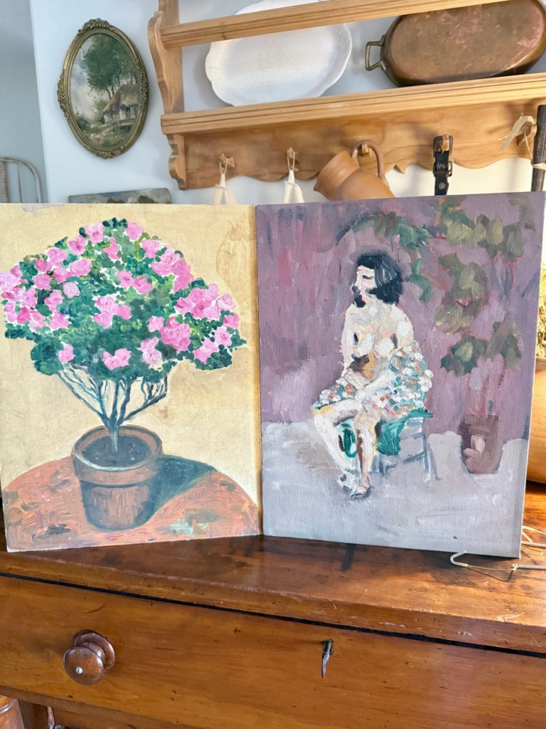 One thing I’m always on the hunt for while thrifting is original art 🤍🤍 I found these two gems at Savers and instantly fell in love! They were a little bright for my home, so I coated them with some stain and wiped it back 🤍 To the artist who painted these, thank you! They will be loved #furnitureattiffanys #handmedowncottage #homedecor #vintage #thriftstorefinds #art #thrifting #paintings #funfind