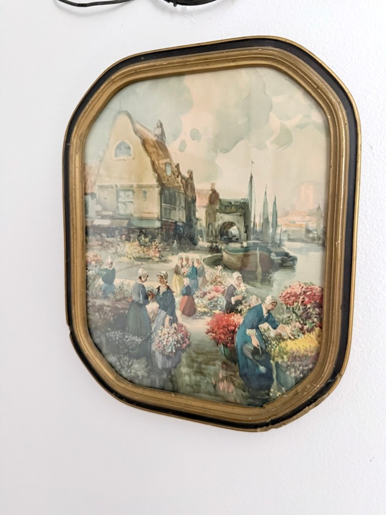 The antique watercolor I found this last weekend in St George styled π Itβs a depiction of a Dutch flower market #furnitureattiffanys #handmedowncottage #antique #art #dutch