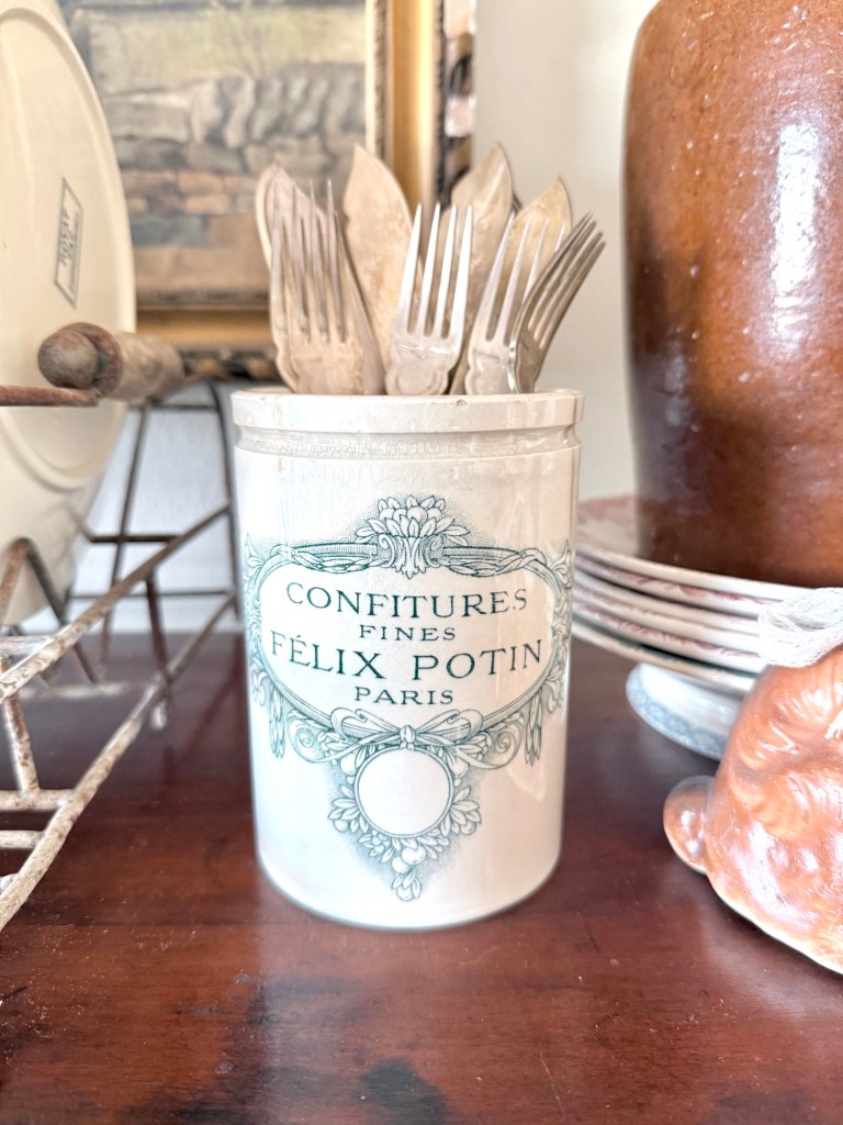 A closer look at the antique Felix pot I found the other day @kpdesigns_finds booth @thegrovevintage 🤍 Isn’t she pretty? #furnitureattiffanys #handmedowncottage #french #felixpotin #pretty