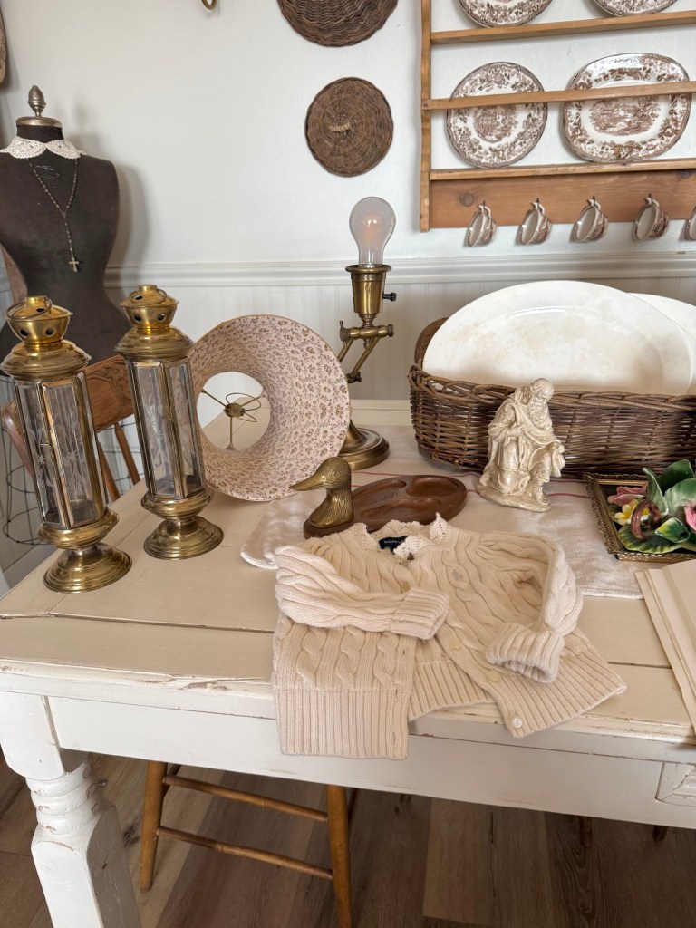Today’s finds ❤️ What would be your fav? Mine is the old hat! #furnitureattiffanys #handmedowncottage #thriftstorefinds #vintage #homedecor