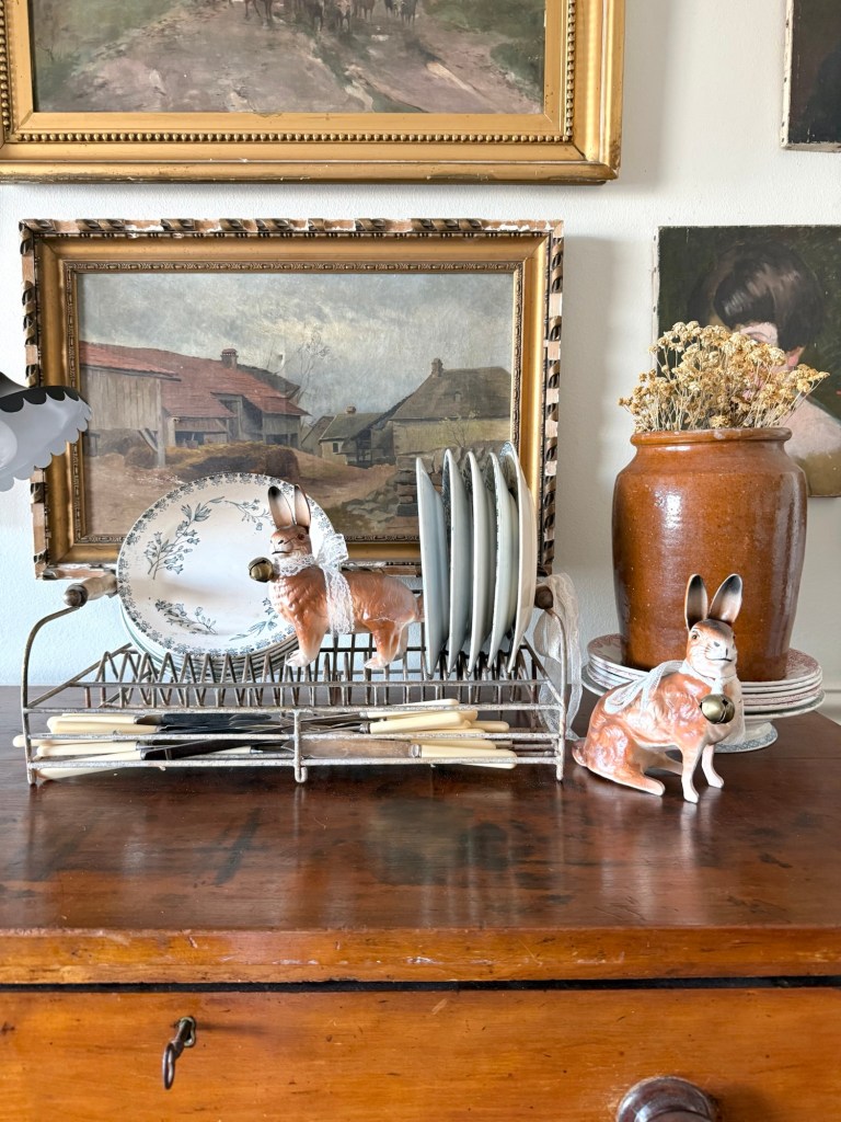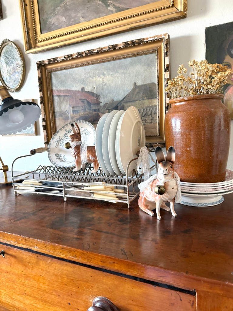 Happy Tuesday! It feels like Spring in Utah… birds are chirping, sun is shining 🌞 Super weird weather for February! I love my old German bunny candy holders… they are some of my fav finds! Do you collect them? I’d love to see yours! #furnitureattiffanys #handmedowncottage #german #bunnies #candyholder
