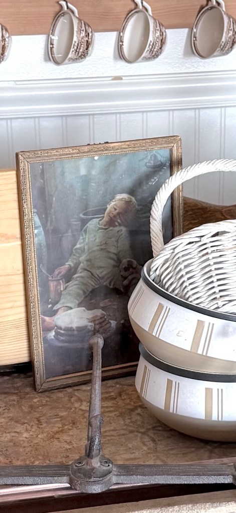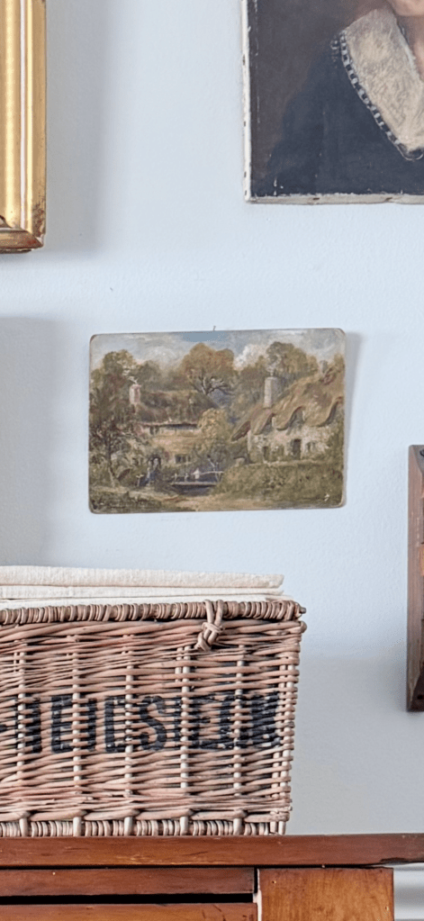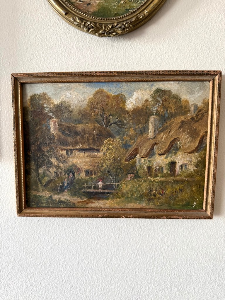 I have been looking for the perfect frame for this painting for years! I scored this little gem yesterday, and guess what? It’s a perfect match 🤎 This is why I love thrifting!! @deseret_industries #furnitureattiffanys #handmedowncottage #thriftstorefinds #art #antiqueframe